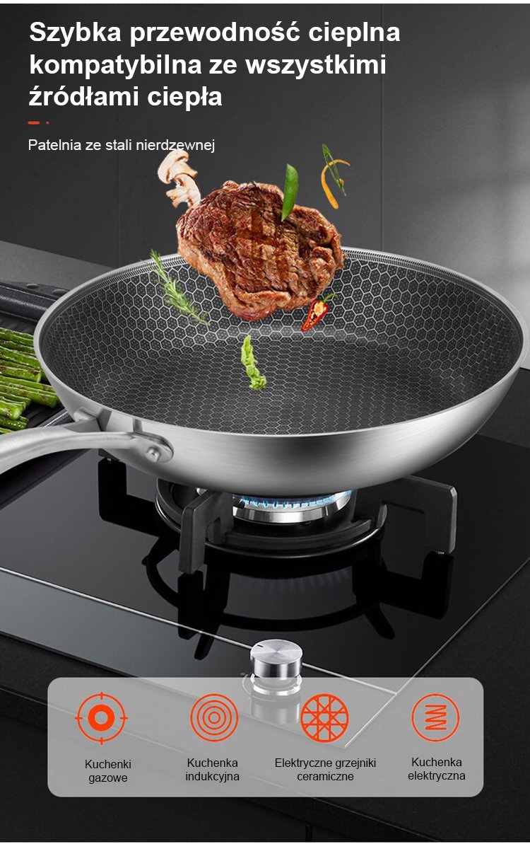 Patelnia ze stali nierdzewnej o strukturze plastra miodu z nieprzywierającym dnem bez powłoki
